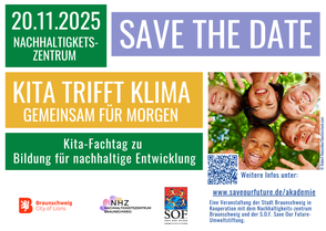 Das Nachhaltigkeitszentrum Braunschweig öffnet seine Türen und lädt pädagogische Fachkräfte und Kita-Leitungen aus Braunschweig ein sich zu informieren und zu vernetzen. Neben Impulsen, Best-Practice-Beispielen, Informationen zu städtischen Angeboten und Materialien zur Weiterarbeit stehen das gemeinsame Lernen und die Entwicklung konkreter Ideen für die eigene Einrichtung im Mittelpunkt. So wollen wir gemeinsam Engagement stärken und den Weg zu einer nachhaltigeren Bildungslandschaft für die Jüngsten gestalten.