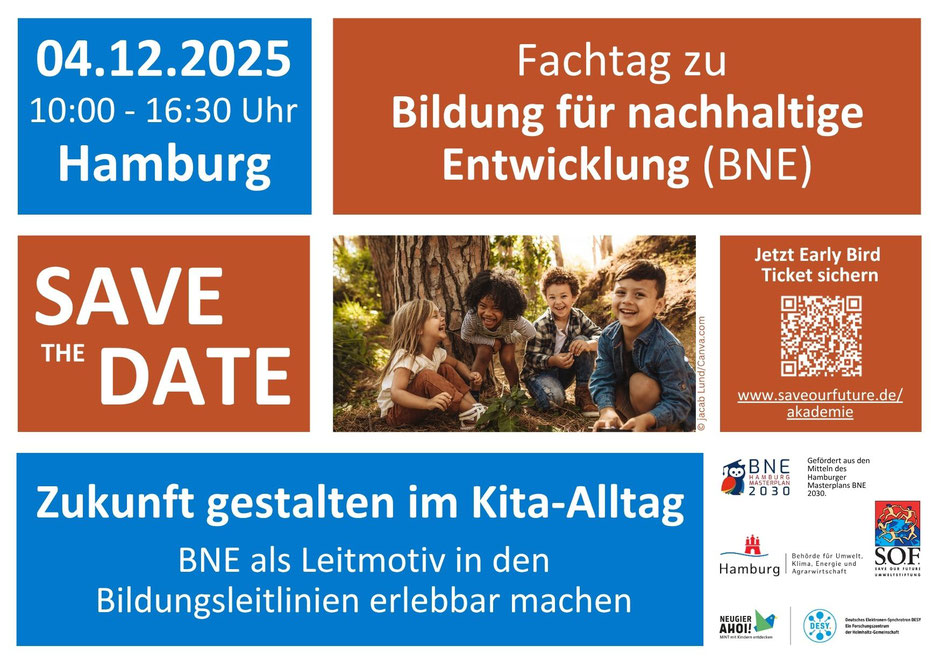 Beim nächsten Fachtag thematisieren wir konkreter, wie Bildung für nachhaltige Entwicklung als Leitmotiv in den Hamburger Bildungsleitlinien für die frühkindliche Bildung verankert ist und wie sich BNE in einem ganzheitlichen Sinne (Whole Institution Approach) alltagsnah, kindgerecht und ohne Mehraufwand umsetzen lässt. Im Fokus steht dabei auch, wie BNE und der Kinderperspektiven-Ansatz sich wunderbar ergänzen.